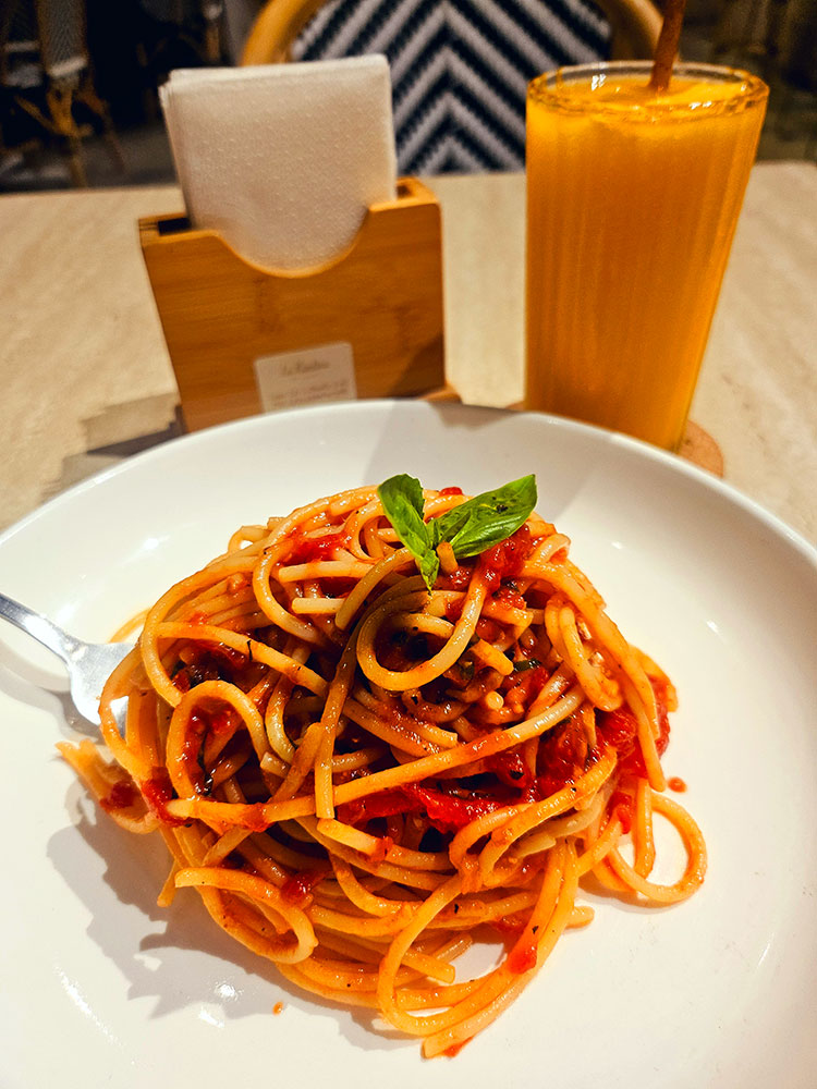 I’ve been seeing and hearing a lot about two areas that have developed in the surftown that I really wanted to visit: Port San Juan and Alpas La Union. Port San Juan is co-owned by singer-songwriter Rico Blanco, while Alpas La Union is co-owned by Hale’s Champ Lui Pio. Port San Juan is this area where you can discover a variety of food sellers, essentially a nice food court that is walking distance from the beach. I didn’t dine there, but I did hang out there on the eve of my birthday while listening to their Thursday acoustic band. I even got free advance happy birthday beers from my manong Rico, who had his main person, Port San Juan manager Ryan, buy them for him to be given to me. There are still a few food spaces that need to be filled, so anyone interested in renting would be wise to do so because, according to Rico, Motel Mambo, which is currently being built on top of Port San Juan, will be completed by Q1 next year. Motel Mambo is going to be a mix of private rooms and dormitories, so YEY for more accommodations in San Juan. The Italian restaurant La Kantina, owned by Kermit Siargao’s Gianni Grifoni, is located just outside of Port San Juan. I had to taste their pasta because the restaurant at Kermit Siargao is one of my favorite Italian places I’ve ever visited and dined in. La Kantina isn’t like Kermit Siargao, where you can have your Italian meals while digging your toes into the sand, but their Pasta Pomodoro was delicious. It was a wonderful first dinner for that trip in La Union. I thoroughly enjoyed it.