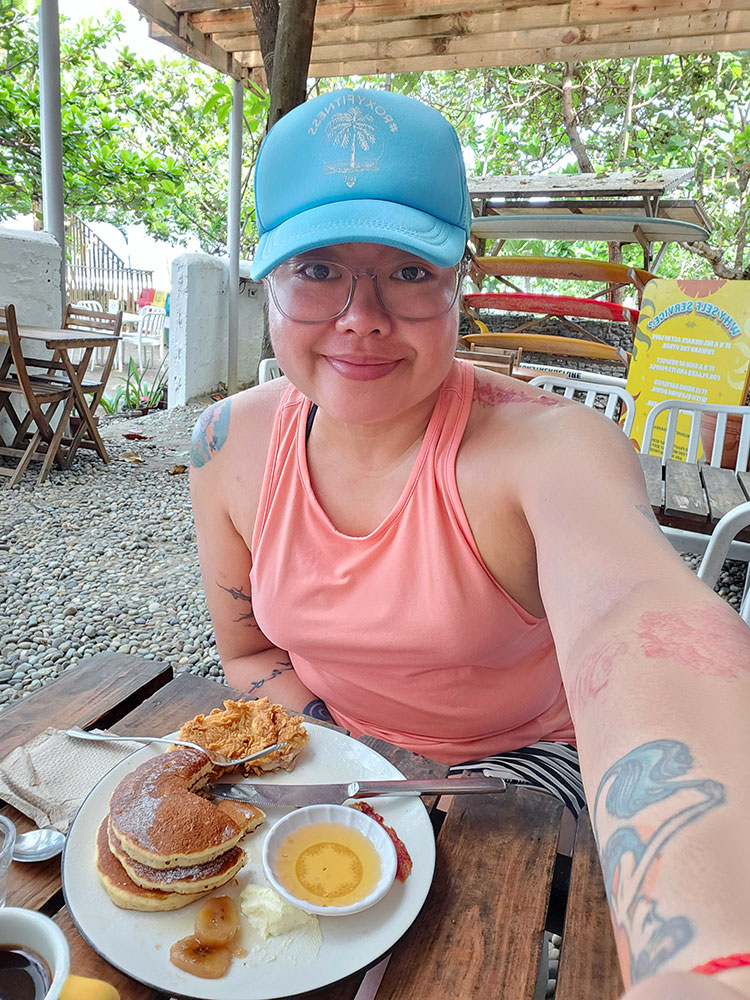 I arrived early at Partas Pasay Station, and the bus left around 6 a.m. I ate breakfast first at Jollibee because I knew the trip would be long, even with a stopover at the Arnes Bus Stop when we arrived in Pangasinan. I got at my location after around six hours. I got off at San Juan Surf Resort, my go-to home away from home in La Union. I got one of their cheapest accommodations. It was my first time staying in that room at the resort, and it was okay, there was nothing really special with it. There was no view, but it was clean and decent. Unfortunately, the bathroom had a foul odor, and the water flowed intermittently while I was in the shower. The room was P3,580 per night, and I’m not sure if it was worth the money. I realized I’m ready to hunt for new lodging when I return to La Union.