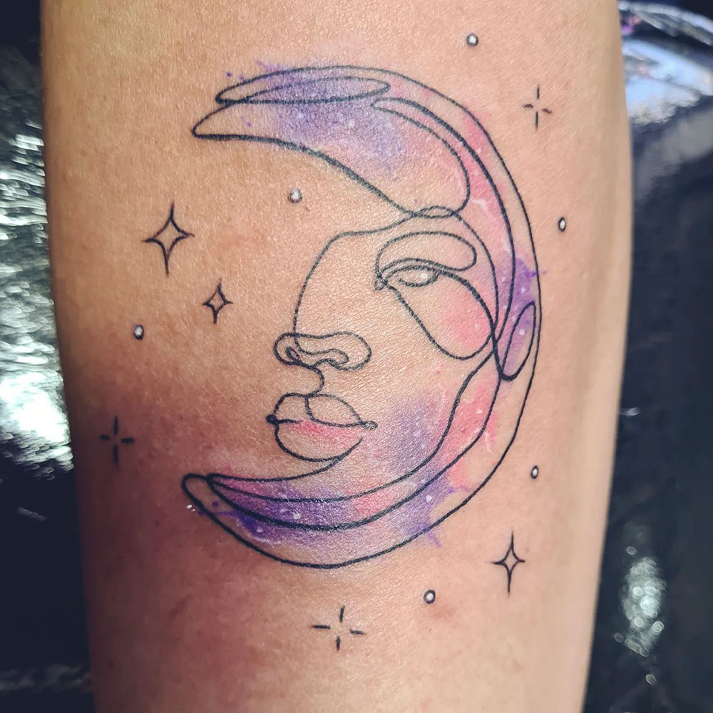 Colored and shading. A lot of people want me to do watercolor style tattoos. I also really like doing vintage, botanical designs, scientific illustrations, and asymmetrical tattoos. Come to me for colorful, happy tattoos.
