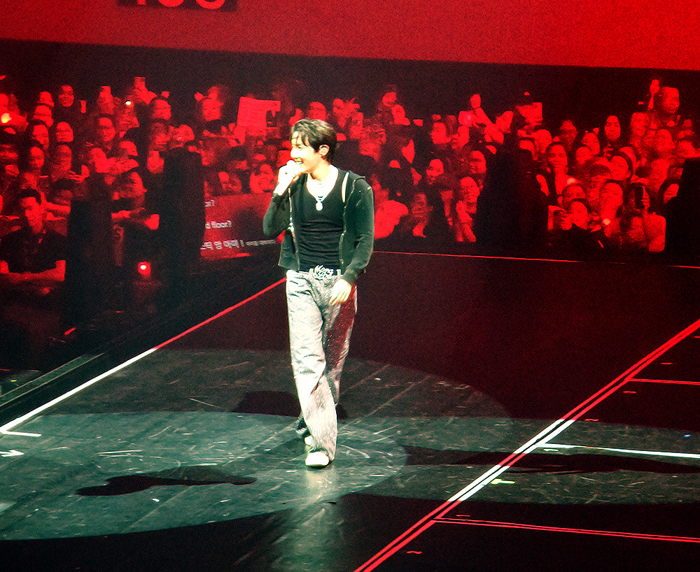 Opening with “What If…” from his Jack in the Box album, j-hope immediately set the tone with powerful choreography and unmatched charisma, dressed in a stunning red outfit designed by Korean designer Juntae Kim.
